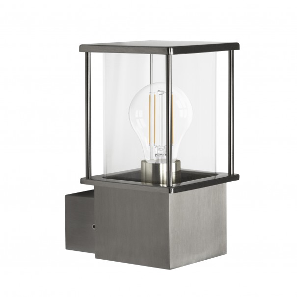 RVS buiten wandlamp. 2xE27. Geschikt voor led verlichting. Hoog 22,5cm. Breed 12cm. Diep 17cm.