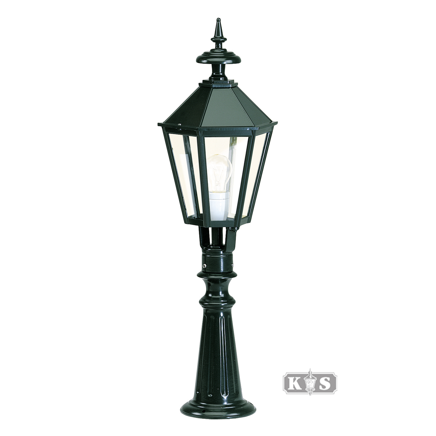 Donkergroen zeskant buiten lantaarn. 1xE27. Geschikt voor led verlichting. Hoog 80cm. Doorsnee kap 22cm. Garantie 3 jaar.