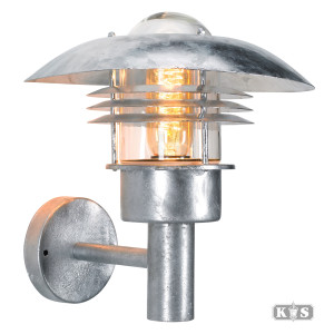 Wandlamp gegalvaniseerd. 1xE27. Geschikt voor led verlichting. Hoog 30cm. Breed 30cm. Diep 30cm.